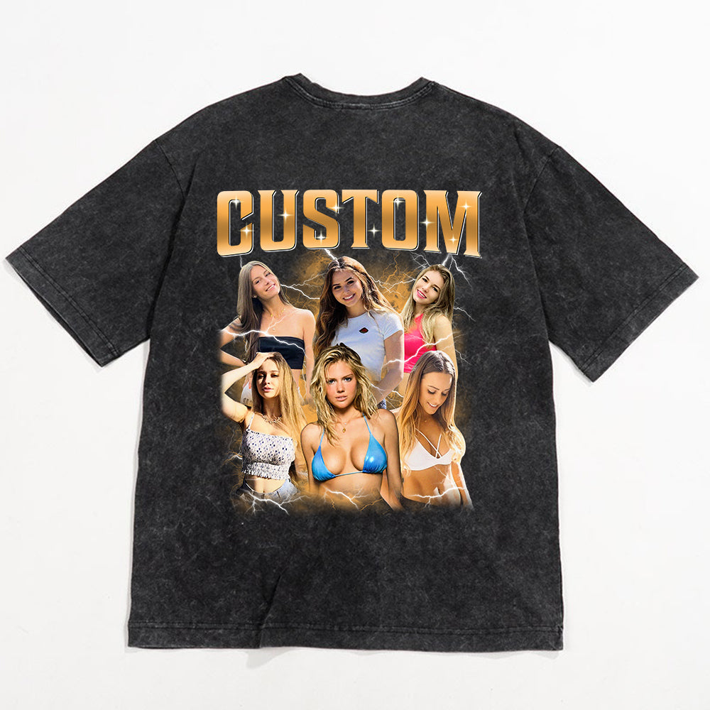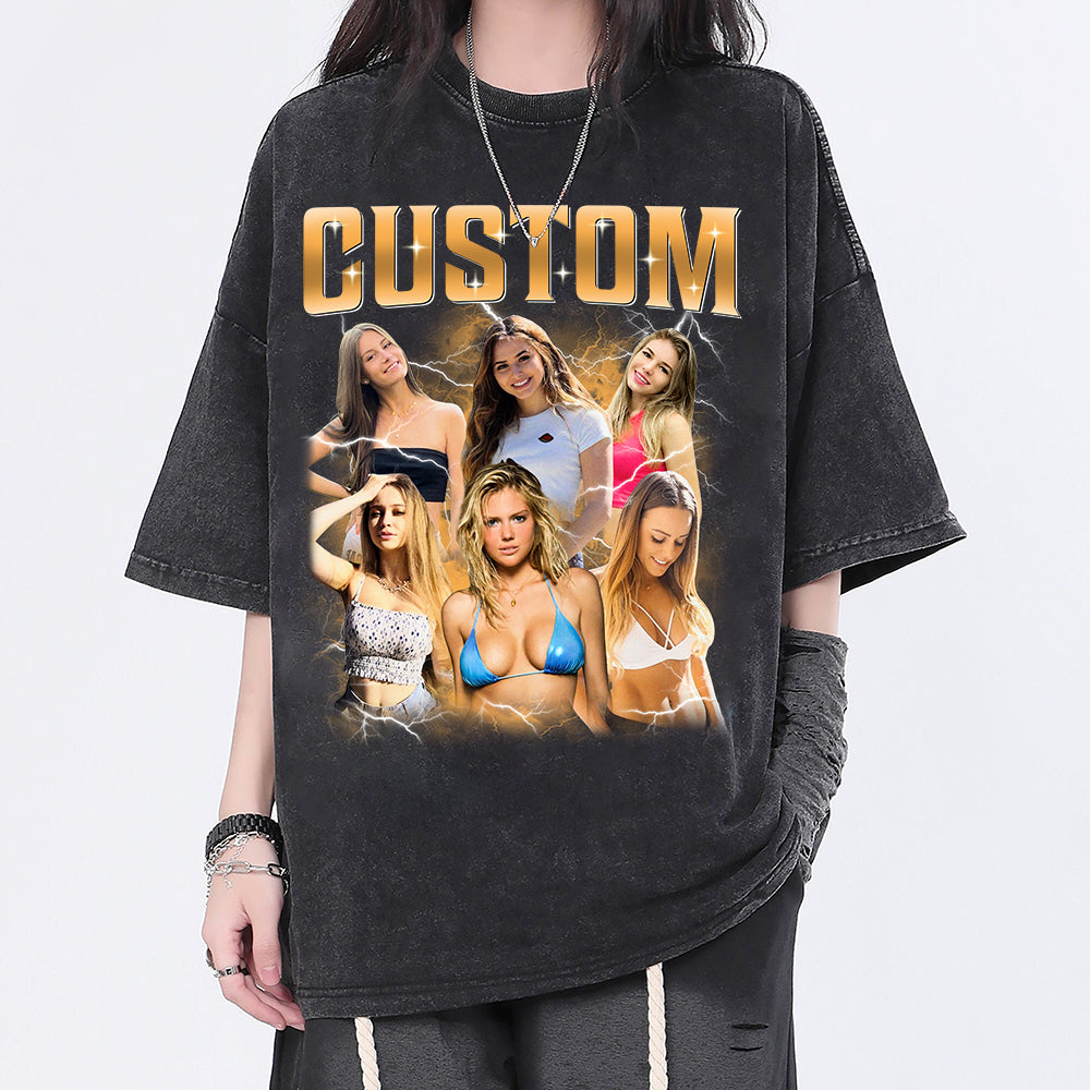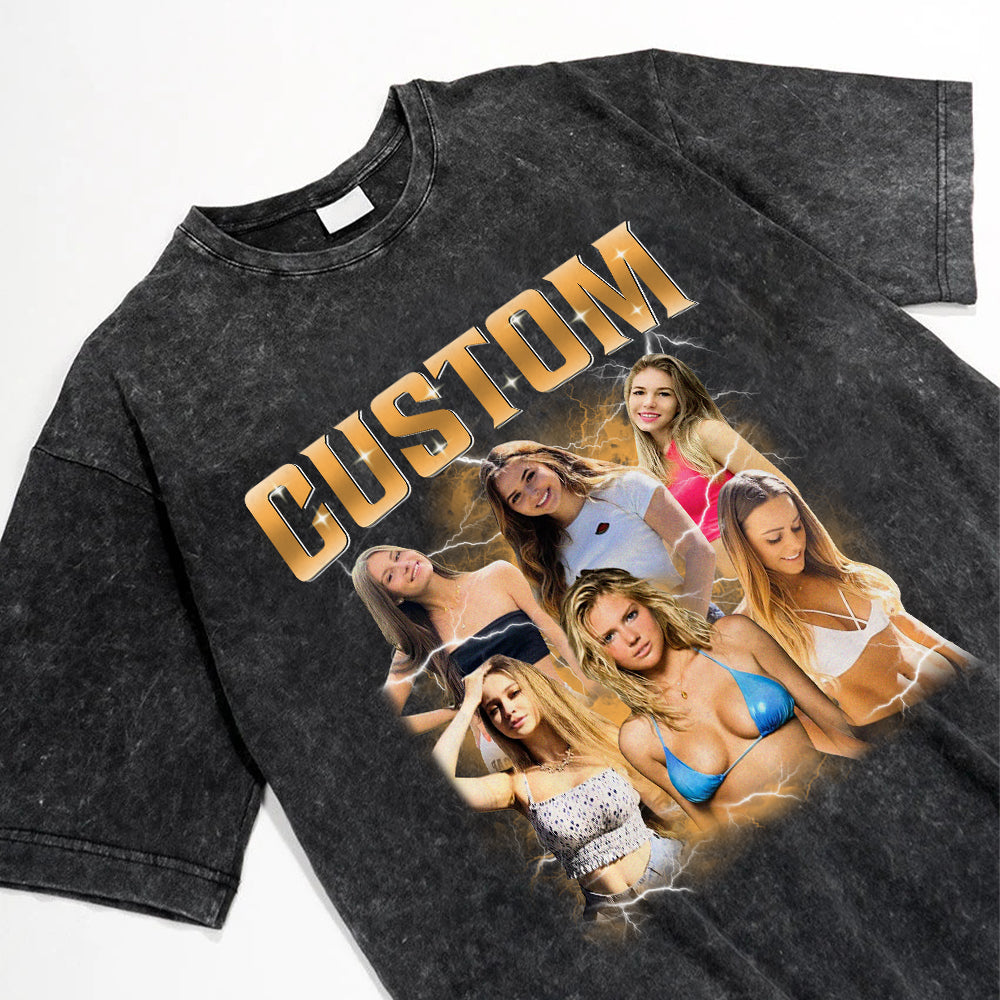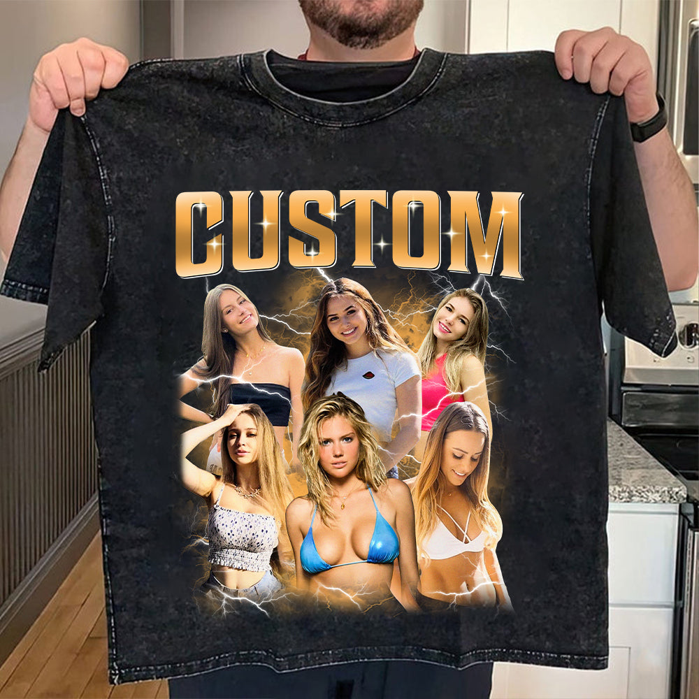 Custom Girlfriend Photo With Unique Style Bootleg Shirt - Valentine Shirt For Boyfriend, Girlfriend