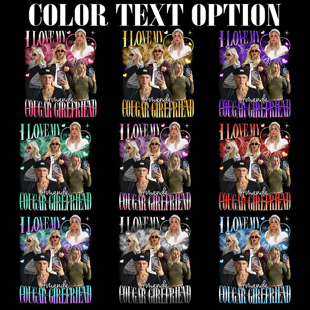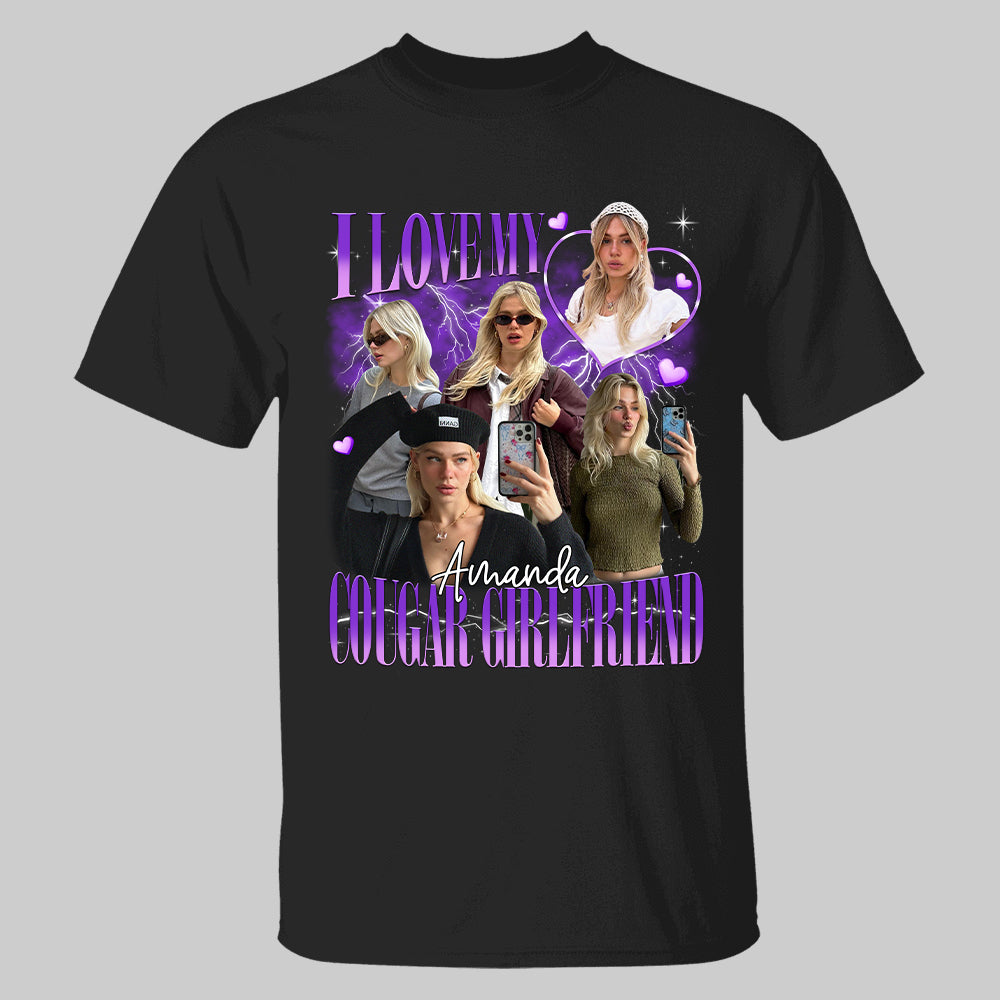 Custom I Love My Cougar Girlfriend Comfort Colors Shirt, I Heart My Cougar Shirt, Valentine Gift I Love My Girlfriend Custom Picture, Girlfriend Bootleg Tee Shirt, 90s Bootleg Shirt