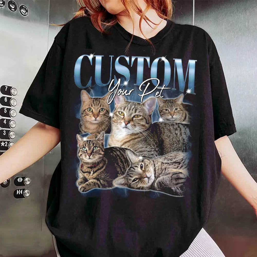 Pet Custom Vintage Washed Shirt Custom Cat Graphic Unisex T-Shirt